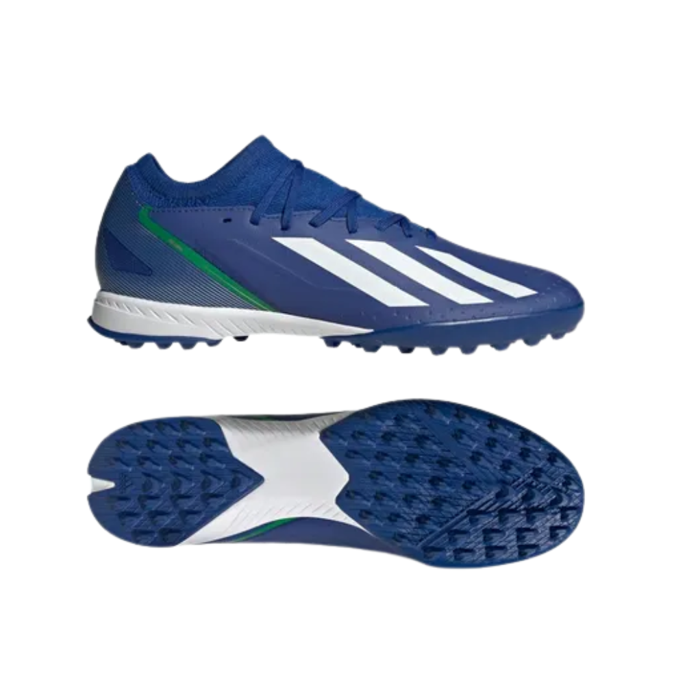 Fast game, tight spaces. The adidas X Crazyfast.3 TF Brazil is built for turf players who move quick and play sharper. Lightweight feel, responsive touch, and grip that keeps you locked in on every cut. That Brazil-inspired colorway brings energy to every play—bright, bold, and full of confidence. This is speed you can feel, control you can trust, and style that stands out on any pitch.