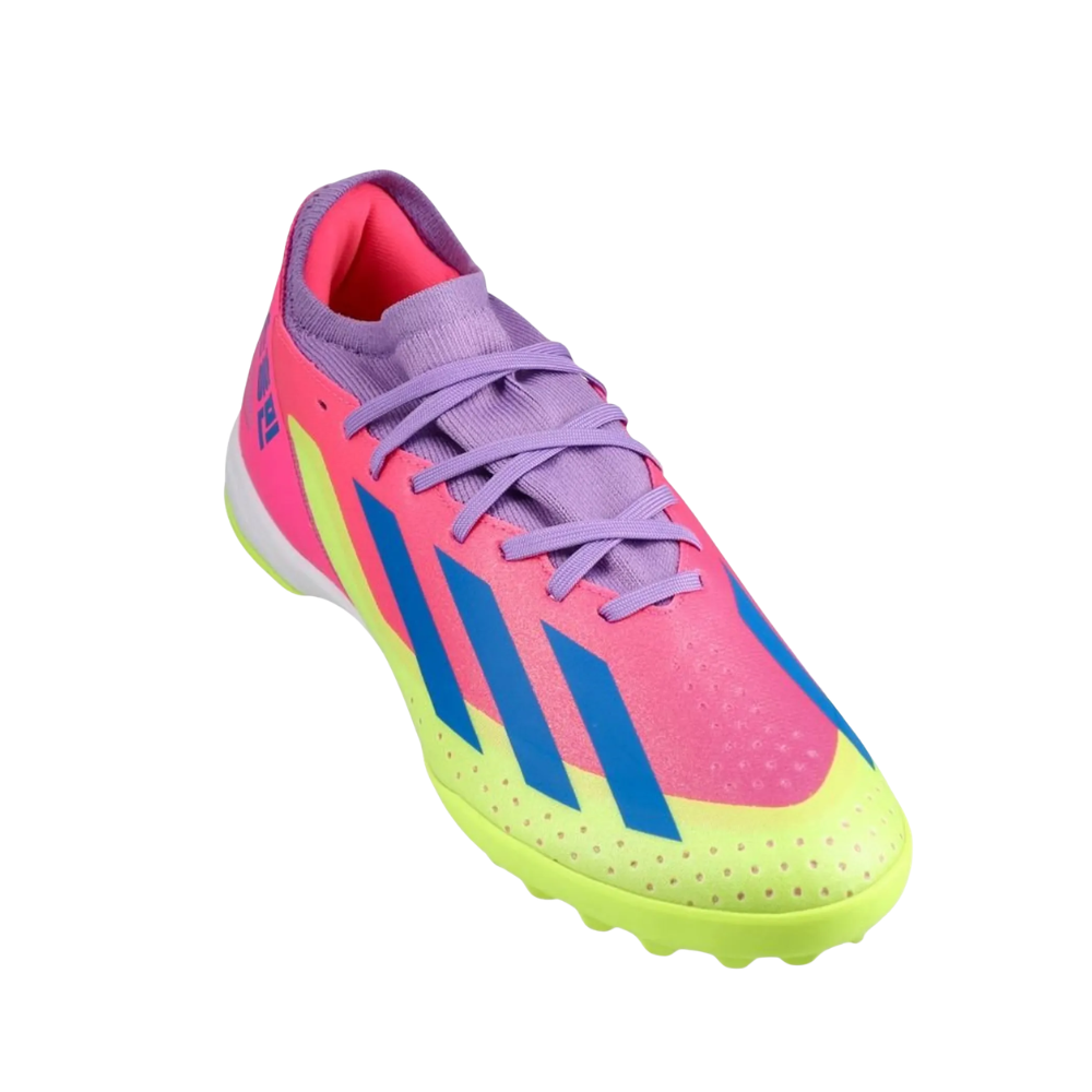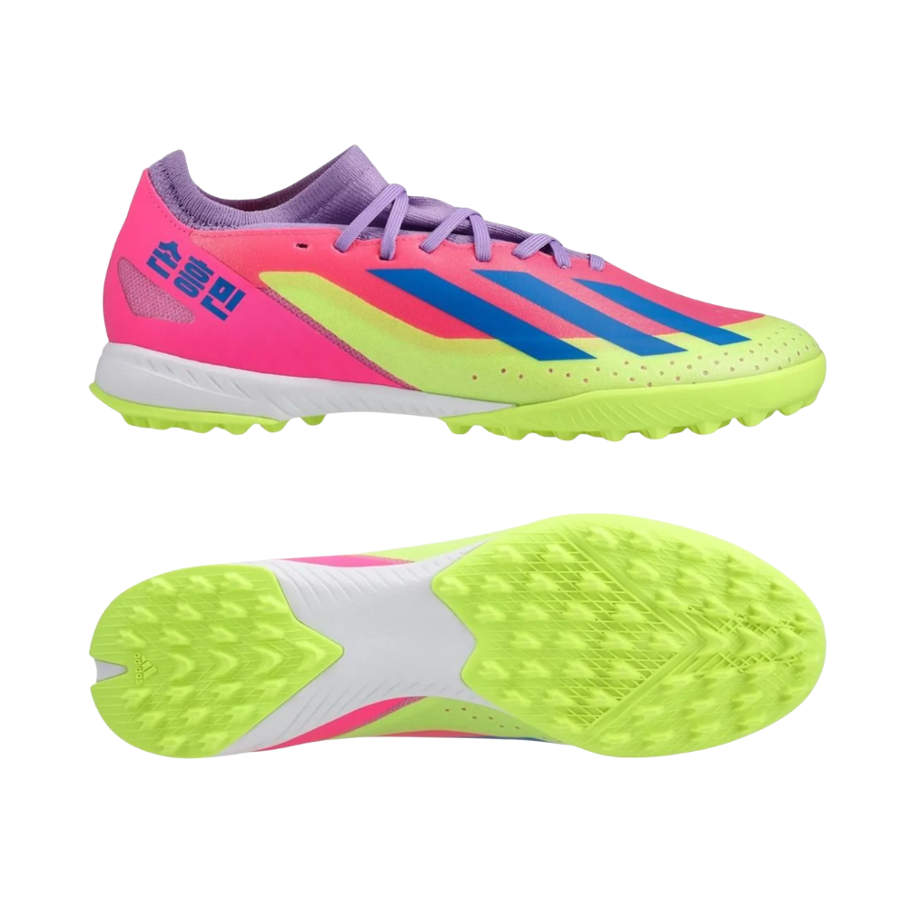 Fast, bold, and full of attitude. The adidas X Crazyfast.3 TF Korean Nights Son brings that electric energy to the turf with a colorway that refuses to stay quiet. Lightweight feel, sharp touch, and quick reactions built for players who attack every play. Inspired by Son’s explosive style, this pair is all about speed, confidence, and making every move count under pressure.