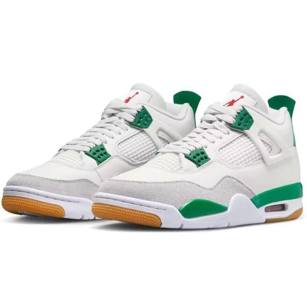 Skate energy meets Jordan legacy. The Air Jordan 4 Retro SB Pine Green brings a fresh twist with crisp white leather, bold green hits, and that gum sole feel underfoot. It’s clean but rebellious, built for movement, impact, and standing out without forcing it. There’s a raw, creative edge in every step—like you’re rewriting the rules of the street your own way.